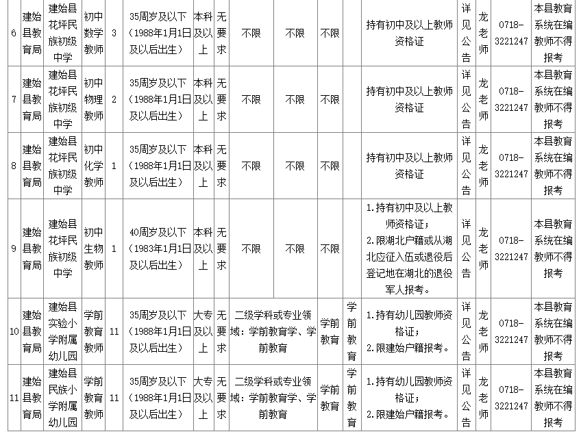 建始縣教育局人事股:0718-3221247。