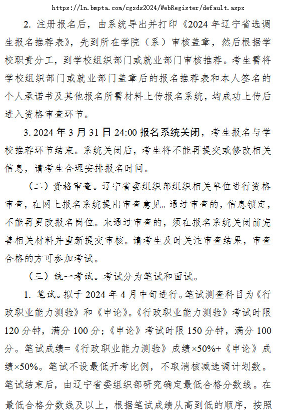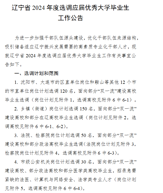 遼寧省2024年度選調(diào)應(yīng)屆優(yōu)秀大學(xué)畢業(yè)生工作公告