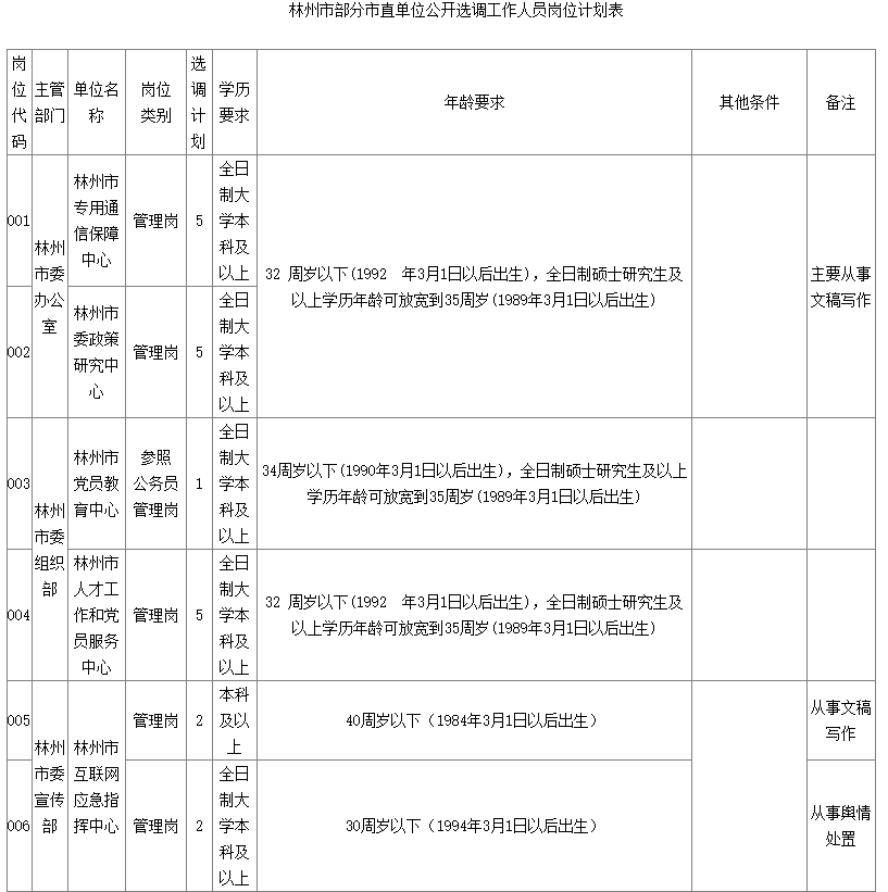 1、2024年林州市部分事業(yè)單位公開選調(diào)崗位計劃表