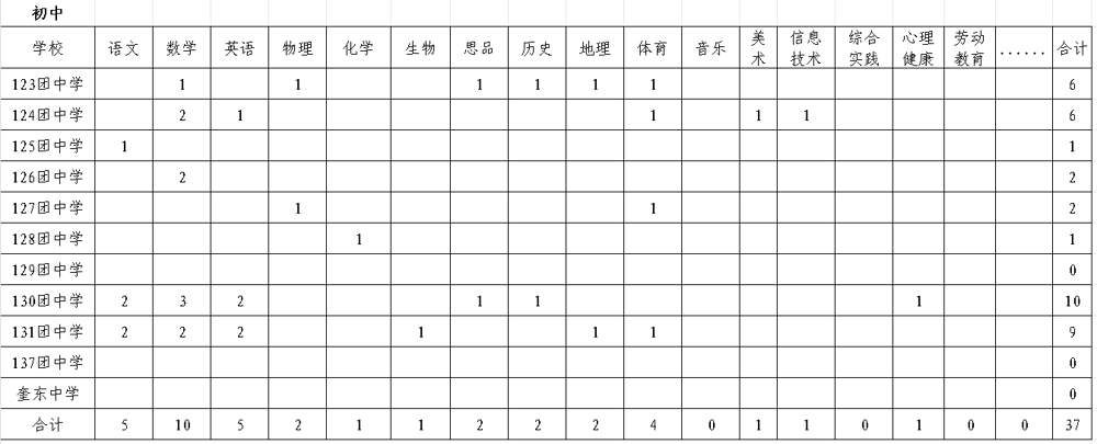 2024年第七師教育系統(tǒng)招聘義務(wù)段特崗教師50名。招聘學(xué)校及科目如下: