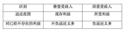 不當(dāng)?shù)美a(chǎn)生后,受益人為善意,即在取得利益時(shí)不知道沒有合法根據(jù),其返還利益的范圍以存在的利益部分為限,如果利益已經(jīng)不存在,則不負(fù)返還義務(wù)。受益人是惡意的,即在取得利益時(shí)明知道沒有合法根據(jù),其返還利益的范圍應(yīng)是受益人取得利益時(shí)的數(shù)額,有損失的還應(yīng)當(dāng)賠償損失,即使該利益在返還時(shí)已經(jīng)減少甚至不復(fù)存在也不能免除其返還義務(wù)。