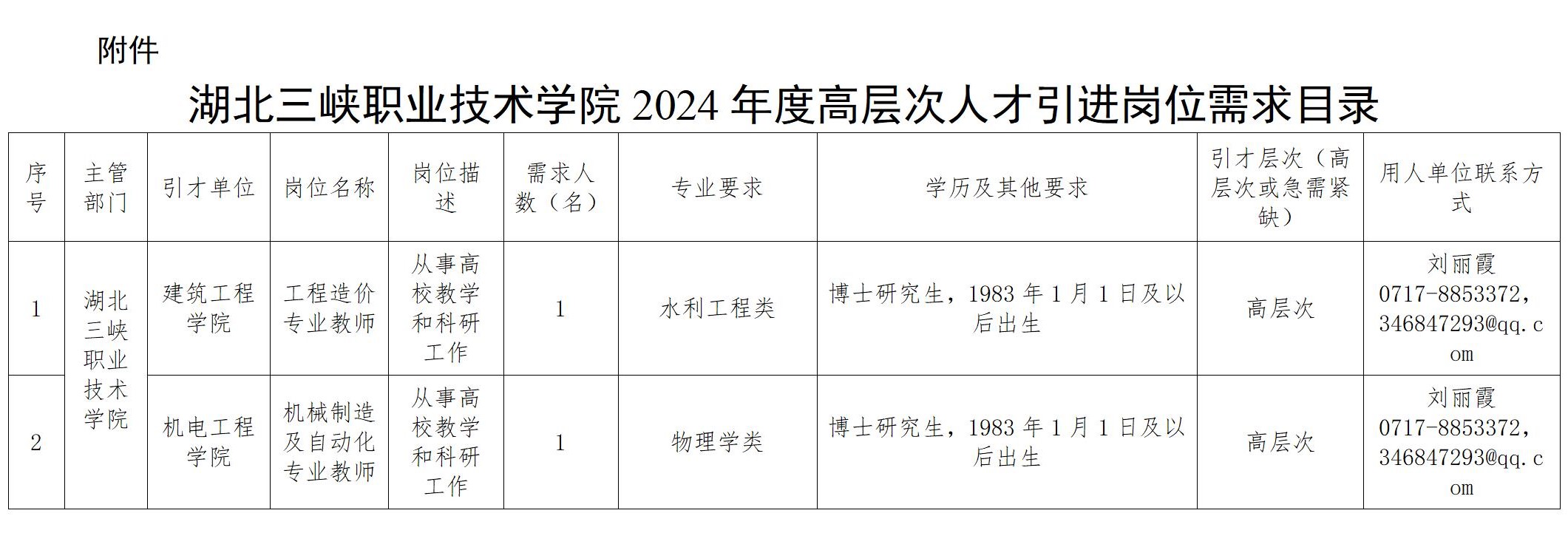 附件:湖北三峽職業(yè)技術(shù)學(xué)院2024年度高層次人才引進(jìn)崗位需求目錄.docx