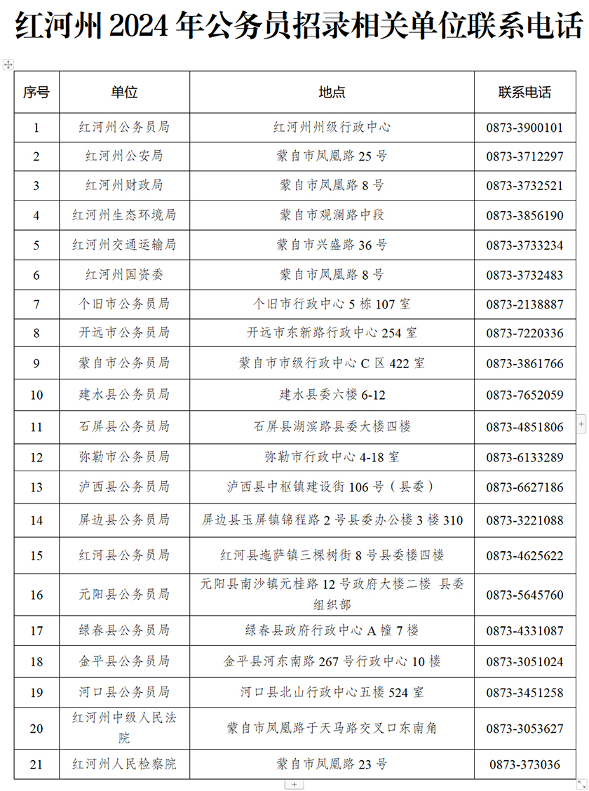 附件:紅河州2024年公務(wù)員招錄相關(guān)單位聯(lián)系電話