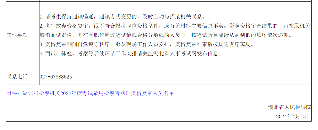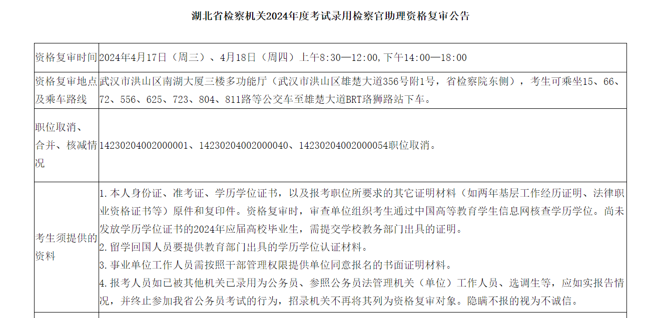 2024年湖北省檢察機(jī)關(guān)公務(wù)員考試檢察官助理資格復(fù)審公告