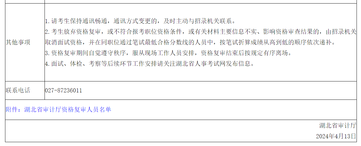2024年湖北省審計(jì)廳公務(wù)員考試資格復(fù)審公告