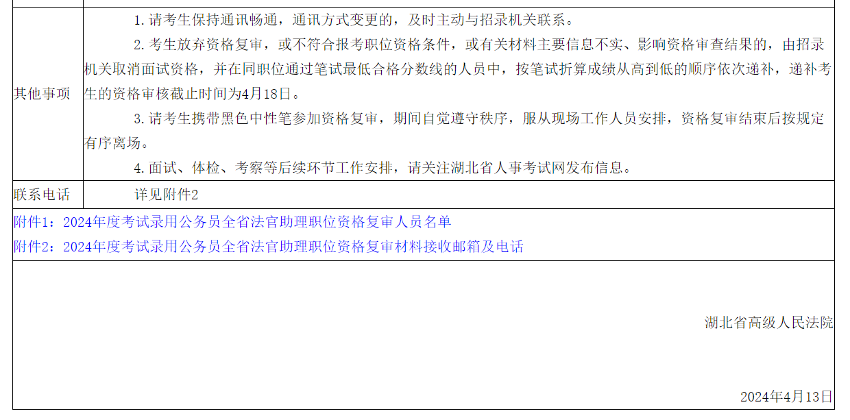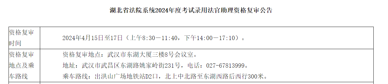 2024年湖北省法院系統(tǒng)公務(wù)員考試法官助理資格復(fù)審公告