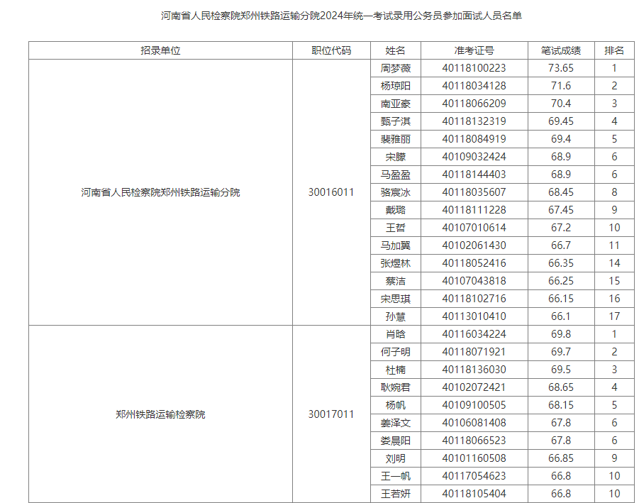根據(jù)《河南省2024年度統(tǒng)一考試錄用公務(wù)員公告》,現(xiàn)將河南省人民檢察院鄭州鐵路運(yùn)輸分院面試有關(guān)事項(xiàng)公告如下: