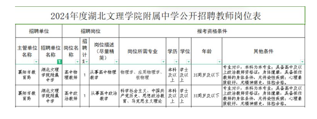根據(jù)《事業(yè)單位人事管理條例》(國務院令652號)、《事業(yè)單位公開招聘人員暫行規(guī)定》(原人事部令第6號)、《關于下達2024年度市直事業(yè)單位增人用編計劃的通知》(襄機編辦〔2024〕2號)以及市人社局對2024年事業(yè)單位公開招聘工作指導意見和《2024年襄陽市第二中學等九所學校公開招聘教師實施方案》,襄陽市教育局組織市二中等九所學校公開招聘42名教師(公開招聘計劃32個,高層次人才計劃10個)。其中,湖北文理學院附屬中學公開招聘高中物理教師1名、高中政治教師1名?,F(xiàn)將有關事項公告如下: