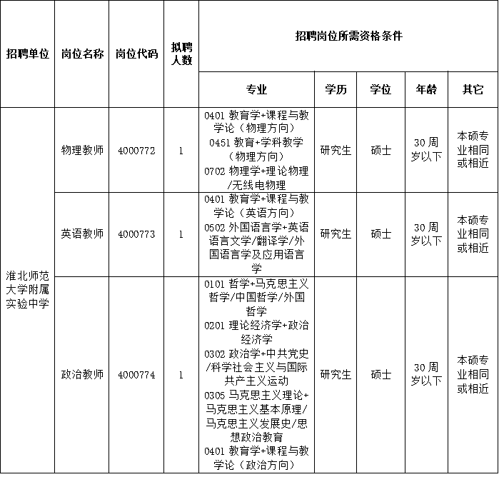 淮北師范大學(xué)2024年附屬實(shí)驗(yàn)中學(xué)教師招聘考核公告