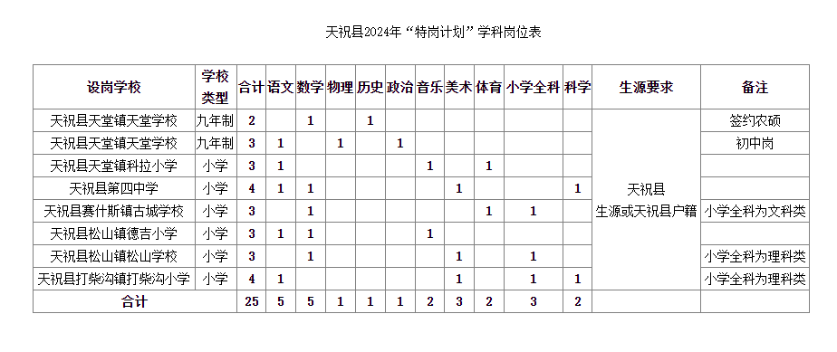 附件:天祝縣2024年“特崗計(jì)劃”學(xué)科崗位表