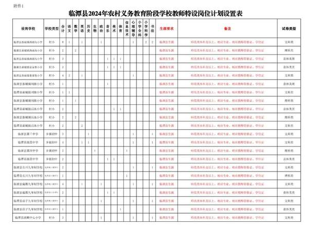 附件:1. 臨潭縣2024年農村義務教育階段學校教師特設崗位計劃設置表