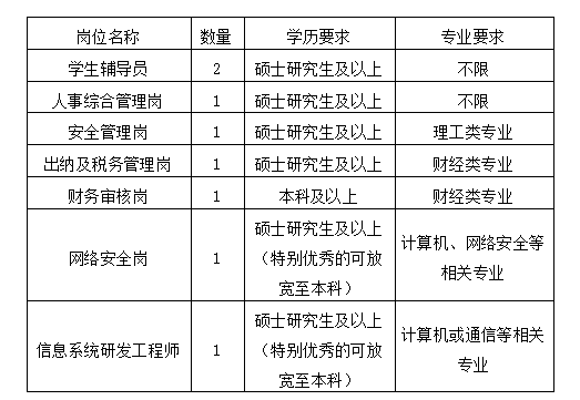 本次招聘崗位名稱及數(shù)量見下表。