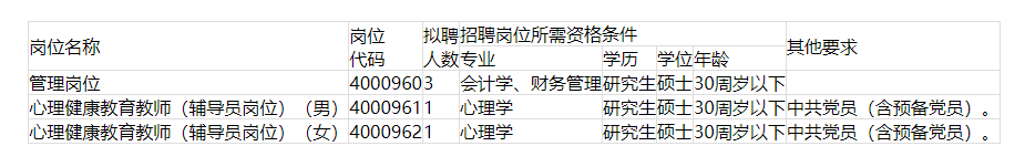 上述命名方式中的“崗位名稱”要與招聘計(jì)劃表格中“崗位名稱”一致,如“心理健康教育教師(輔導(dǎo)員崗位)(男)+……”。