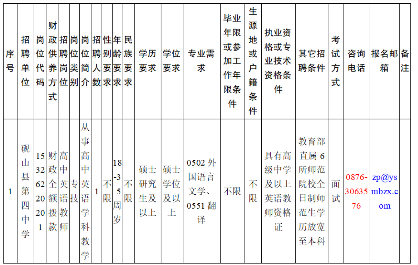 2024年硯山縣第四中學(xué)緊缺崗位(高中英語(yǔ)教師)第二輪招聘通告