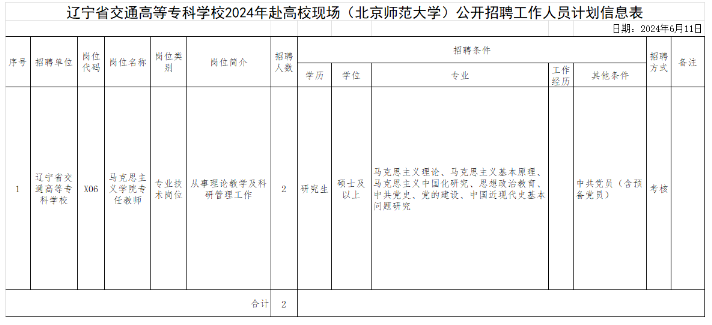 遼寧省交通高等專科學校2024年赴高?,F(xiàn)場(北京師范大學)公開招聘工作人員公告