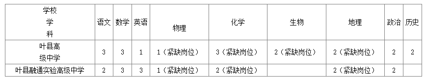 招聘學(xué)校咨詢電話:葉縣高級(jí)中學(xué):0375-8086729;葉縣融通實(shí)驗(yàn)高級(jí)中學(xué):0375-8051329。