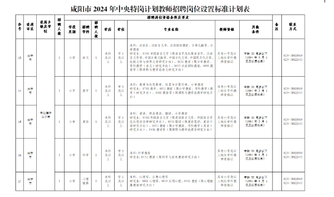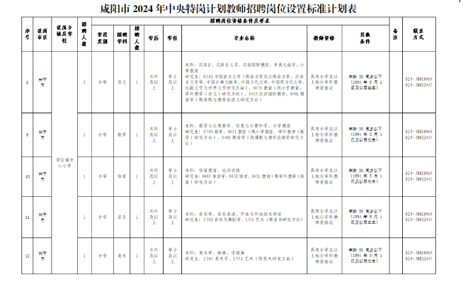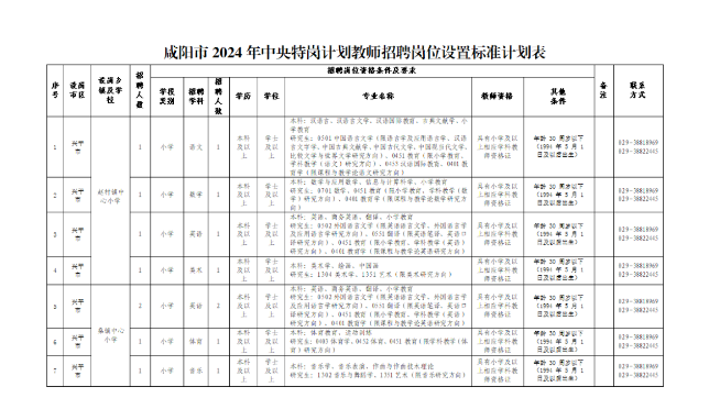 ?。ㄒ唬┕夹枨蟆?月13日前,向咸陽(yáng)市特崗辦報(bào)送2024年招聘計(jì)劃、特崗教師崗位設(shè)置標(biāo)準(zhǔn)及公開招聘辦法等。6月18日起,在陜西省教育廳門戶網(wǎng)站(網(wǎng)址:http://jyt.shaanxi.gov.cn/)等平臺(tái)發(fā)布招聘信息。