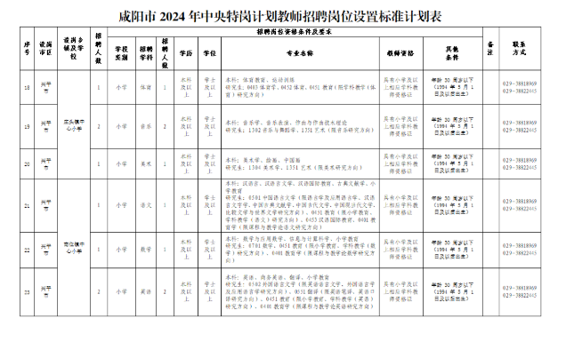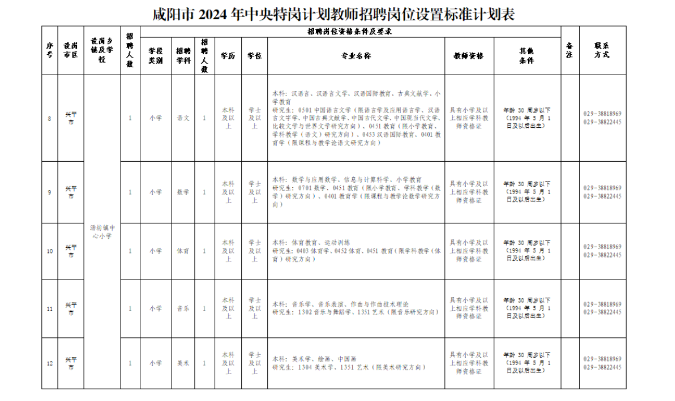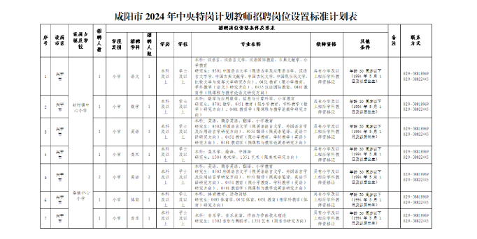 ?。ㄒ唬┕夹枨?。6月13日前,向咸陽市特崗辦報(bào)送2024年招聘計(jì)劃、特崗教師崗位設(shè)置標(biāo)準(zhǔn)及公開招聘辦法等。6月18日起,在陜西省教育廳門戶網(wǎng)站(網(wǎng)址:http://jyt.shaanxi.gov.cn/)等平臺(tái)發(fā)布招聘信息。