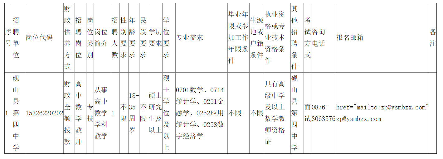2024年硯山縣第四中學(xué)緊缺崗位(高中數(shù)學(xué)教師)第二輪招聘通告