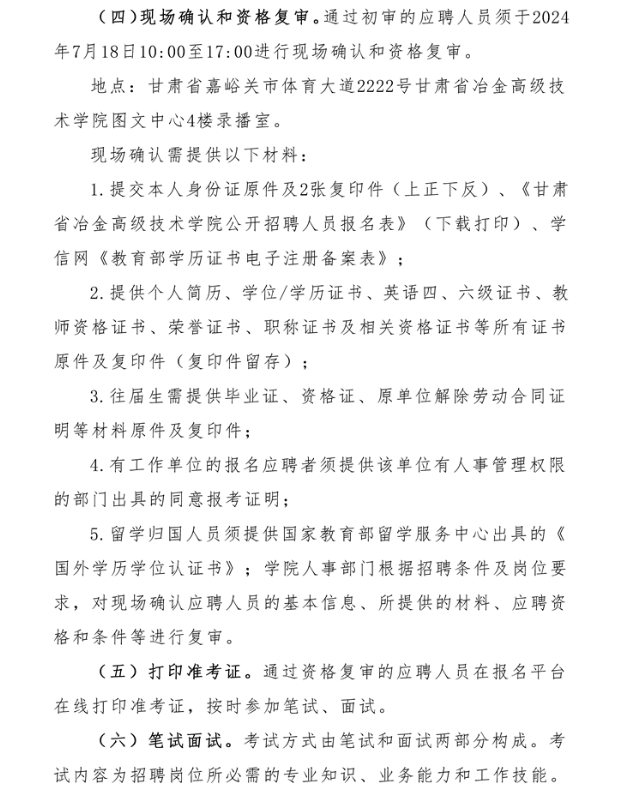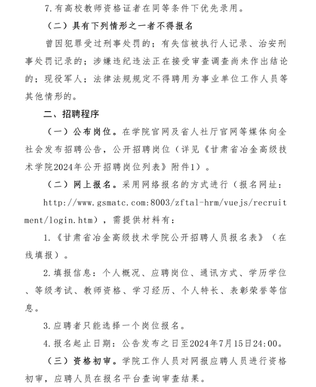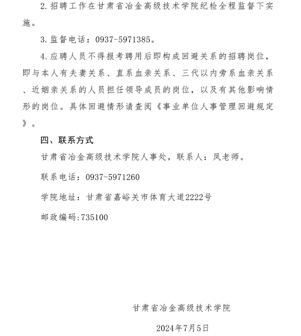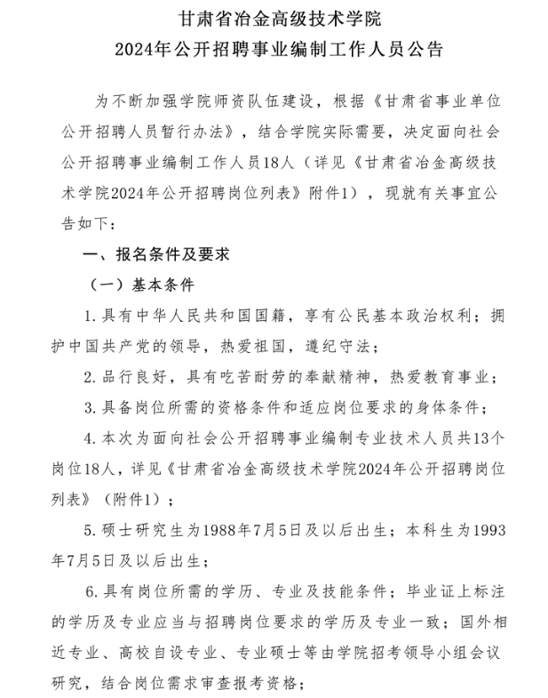2024年甘肅省冶金高級(jí)技術(shù)學(xué)院公開招聘事業(yè)編制工作人員公告
