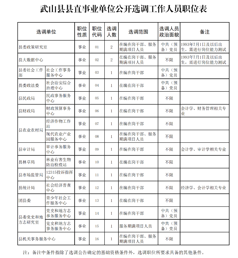 1. 武山縣縣直事業(yè)單位公開選調(diào)工作人員職位表