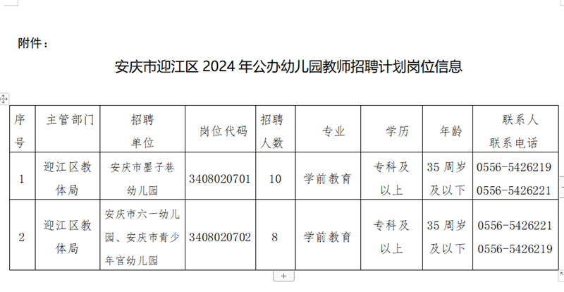 2024年迎江區(qū)計劃公開招聘公辦幼兒園教師18名,均為全額撥款事業(yè)編制。(崗位計劃信息見附件)