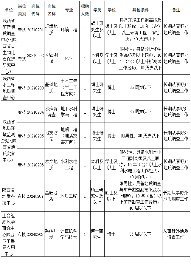 陜西省地質(zhì)調(diào)查院2024年公開(kāi)招聘高層次專(zhuān)業(yè)技術(shù)人才公告