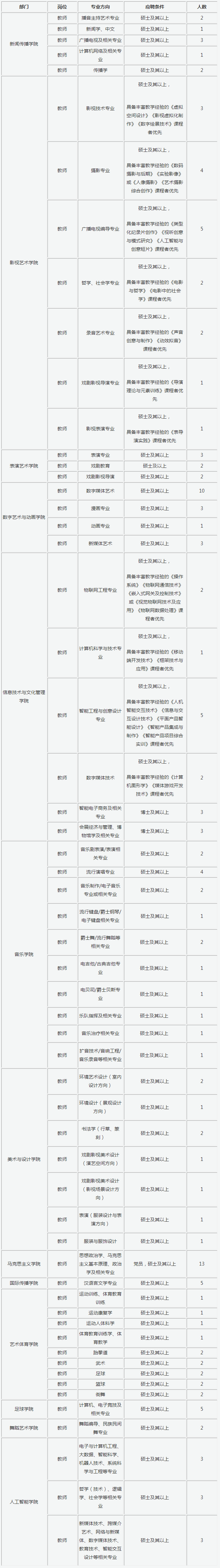 河北傳媒學(xué)院2023-2024學(xué)年招聘計劃