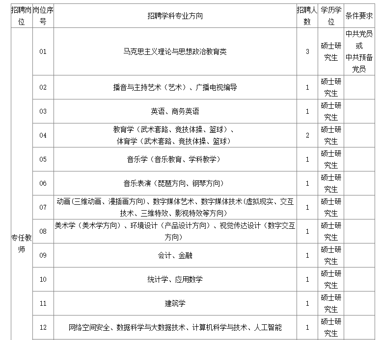 詳見《黃淮學(xué)院2024年碩士專任教師招聘計(jì)劃表》(附件)。