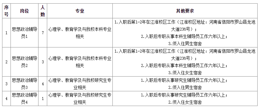 根據(jù)《河南省事業(yè)單位公開招聘工作規(guī)程》(豫人社〔2015〕55號)規(guī)定,我校擬面向社會公開招聘本科生專職輔導(dǎo)員10名、研究生專職輔導(dǎo)員5名。結(jié)合我校實際,制定本公開招聘方案。
