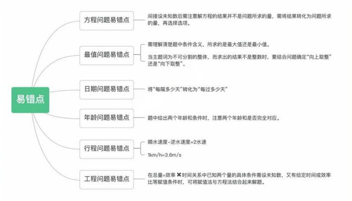 我們先來用思維導圖的方式梳理一下數(shù)量關(guān)系中常見的易錯點形式。