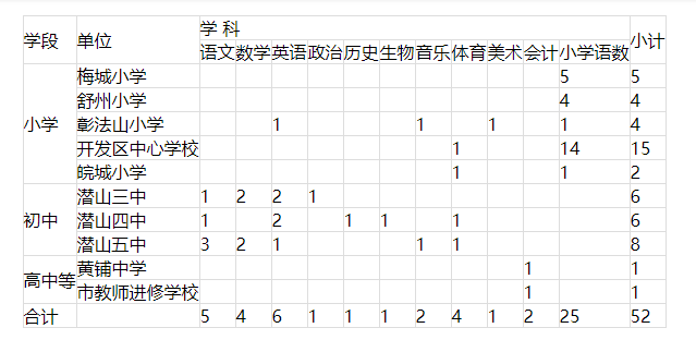 2024年城區(qū)學校擬選調教師合計52名。具體選調崗位和名額分配如下表: