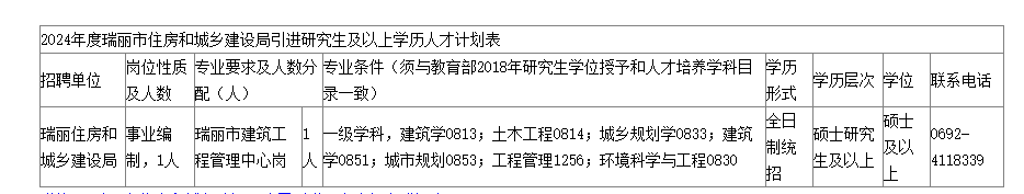 瑞麗市住房和城鄉(xiāng)建設(shè)局2024年度公開引進碩士研究生公告