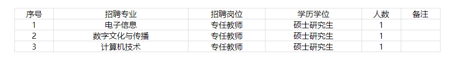 根據(jù)學(xué)校師資隊(duì)伍建設(shè)和教學(xué)工作實(shí)際需要,現(xiàn)面向社會(huì)招聘急需專(zhuān)業(yè)教師,現(xiàn)將有關(guān)事宜公告如下: