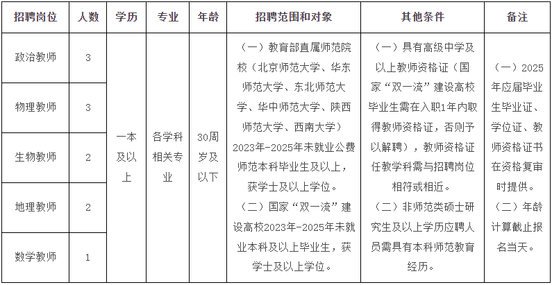 云南省保山第一中學2025年校園公開招聘教師5個崗位共11人,具體崗位如下: