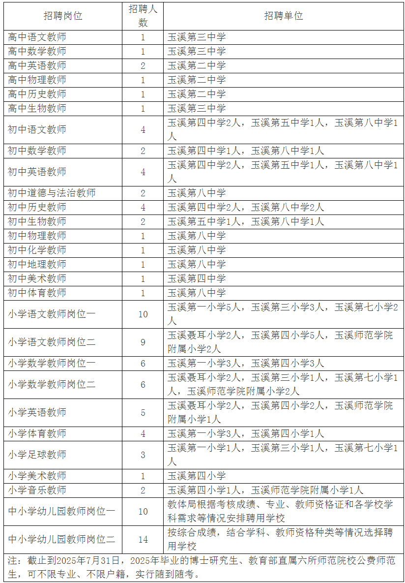 具體崗位及條件詳見(jiàn)《云南省玉溪市紅塔區(qū)公開(kāi)招聘2025年畢業(yè)生崗位計(jì)劃表》(附件2,以下簡(jiǎn)稱(chēng)崗位表)