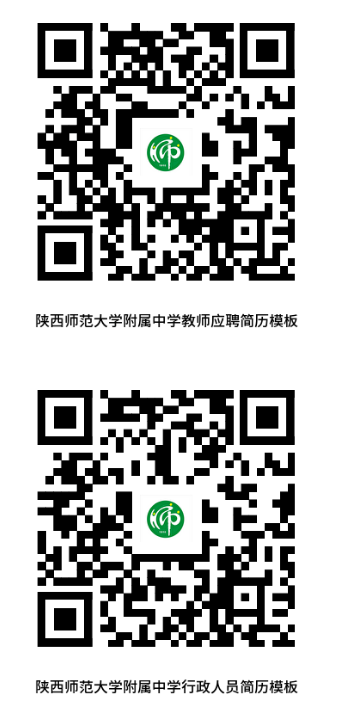 3.進入“筆試及心理測試”環(huán)節(jié),參加者需提供個人紙質(zhì)版簡歷1份(掃描下方二維碼獲取個人簡歷模板:陜西師范大學(xué)附屬中學(xué)教師應(yīng)聘簡歷模板和陜西師范大學(xué)附屬中學(xué)行政人員應(yīng)聘簡歷模板,未使用簡歷模板視為簡歷不合格),紙質(zhì)版簡歷請以“陜西師范大學(xué)附屬中學(xué)教師應(yīng)聘簡歷(或陜西師范大學(xué)附屬中學(xué)行政人員應(yīng)聘簡歷)、身份證復(fù)印件、教師資格證書復(fù)印件(行政人員應(yīng)聘者如果沒有可不提供)、學(xué)歷證書復(fù)印件、學(xué)位證書復(fù)印件、獲獎證書復(fù)印件和簡歷中提及的可以證明本人能力水平的相關(guān)材料復(fù)印件”順序裝訂成冊。