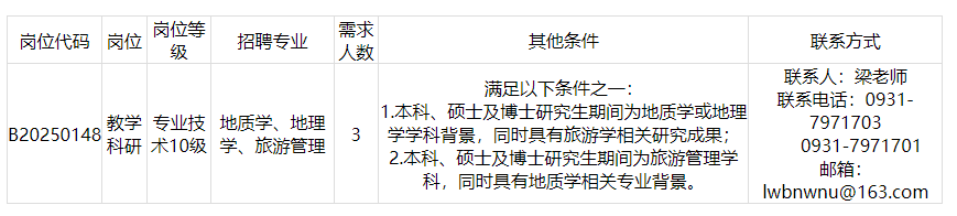 表1西北師范大學旅游學院2025年海內(nèi)外高層次人才招聘需求表