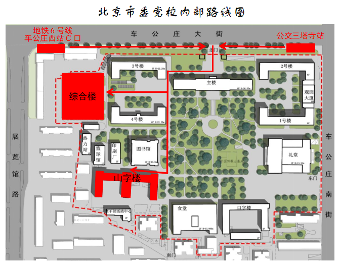 面試地點(diǎn)位于北京市委黨校(北京行政學(xué)院),地址為北京市西城區(qū)車公莊大街6號(hào),可乘坐4路、19路、107路、118路、693路公交車三塔寺站或地鐵6號(hào)線車公莊西站下車,從市委黨校北門(mén)進(jìn)入(具體路線見(jiàn)附件)。