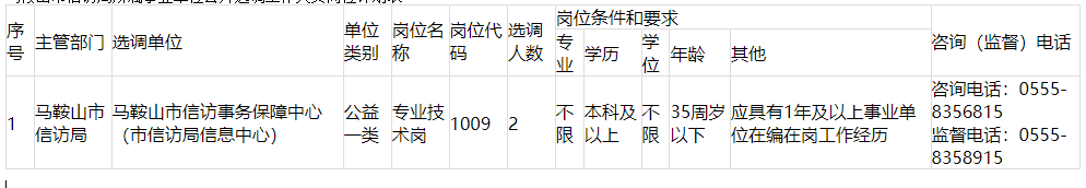 馬鞍山市信訪局所屬事業(yè)單位公開(kāi)選調(diào)工作人員崗位計(jì)劃表