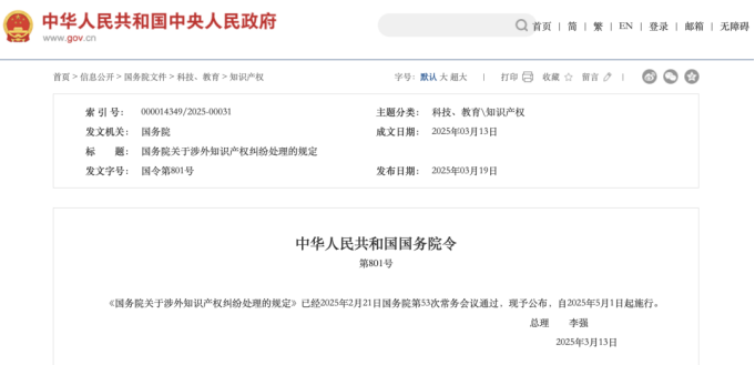 國務(wù)院關(guān)于涉外知識(shí)產(chǎn)權(quán)糾紛處理的規(guī)定