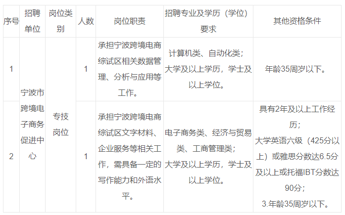 寧波市商務局所屬事業(yè)單位公開招聘工作人員公告