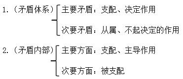 二是,矛盾主次方面關系原理處于簡單事物中(只包括一對矛盾):主流、主體、(絕)大多數(shù)、主要方面、主導作用、用于分析事物性質(zhì)。