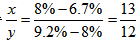 【答案】B。解析:由題意可知:題干中涉及到進(jìn)口額、出口額、總值的值和增長率。而所求為2011年的出口額和進(jìn)口額的比值,即他們基期值的比值。而增長量=基期值×增長率,總值又分為進(jìn)口額和出口額兩個(gè)部分。則進(jìn)口額的增長量+出口額的增長量=總值的增長量。設(shè)2011年上半年我國外貿(mào)出口額和進(jìn)口額分別為x、y億美元,則2011年上半年我國外貿(mào)進(jìn)出口總值為x+y億美元。故x·9.2%+y·6.7%= (x+y)×8%,解得