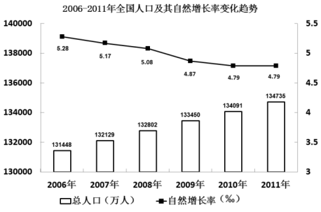 【解題思路】定位圖形材料1可得: 2006年自然增長率為5.28‰,2011年的自然增長率為4.79‰。故2011年人口自然增長率-2006年人口自然增長率=4.79‰-5.28‰=-0.49‰材料單位為‰,問題為百分點(diǎn),則需換算單位:-0.49‰=-0.049%,即與2006年相比2011年我國的人口自然增長率下降了0.049個(gè)百分點(diǎn)。