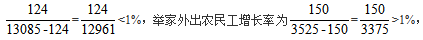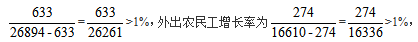 例2:2013年全國農(nóng)民工總量26894萬人,比上年增加633萬人。其中,外出農(nóng)民工16610萬人,增加274萬人;本地農(nóng)民工10284萬人,增加359萬人。在外出農(nóng)民工中,住戶中外出農(nóng)民工13085萬人,增加124萬人,舉家外出農(nóng)民工3525萬人,增加150萬人。