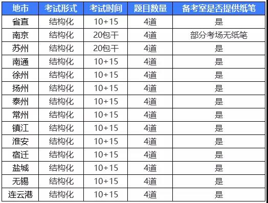 結合近幾年江蘇省公務員招錄情況,就面試形式而言,仍以傳統(tǒng)的結構化面試為主。在常州、南通、蘇州、淮安、鎮(zhèn)江、泰州等部分考場曾出現(xiàn)過結構化小組面試形式;另外,部分省直特殊崗位,如商務廳,曾采用過無領導小組討論面試。除此之外,其他基本都是結構化面試。2021年3月6日和3月7日面試情況基本一致,10+15模式居多,采用20分鐘結構化的地市越來越少。值得注意的是,以往采用“10+15”模式的南京這次變?yōu)榱恕?0分鐘結構化”。