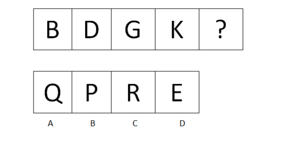 【解析】B。“B”與“D”之間隔1個字母,“D”與“G”之間隔2個字母,“G”與“K”之間隔3個字母,“K”與“P”之間隔4個字母,間隔字母數(shù)分別為1、2、3、4,遞增規(guī)律,所以選B。