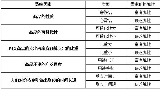 一種商品需求價(jià)格彈性大小受很多種因素的影響,主要有: