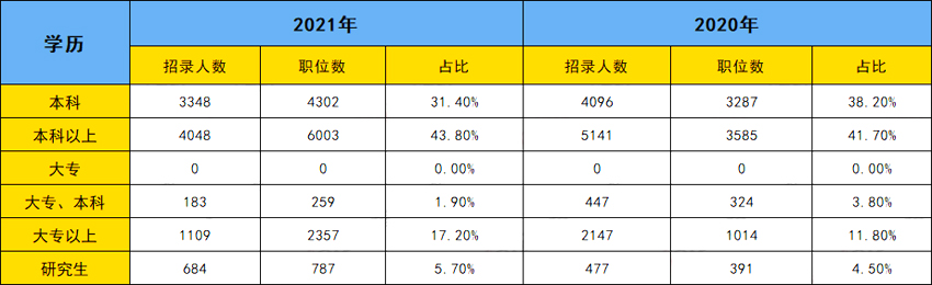 2020-2021年廣東省考崗位對學歷要求情況統(tǒng)計表
